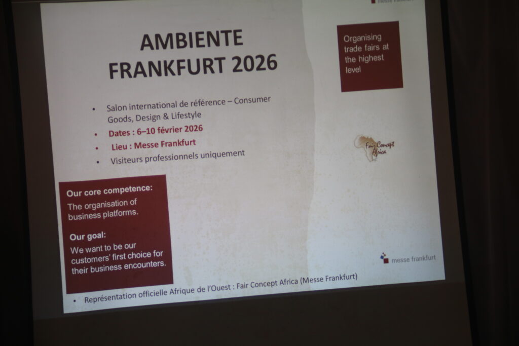 Lors de la présentation organisée à Abidjan, les participants ont été informés de la nature et de l’ampleur du salon Ambiente, de ses secteurs clés ainsi que de ses différents segments d’exposition. Les échanges ont également porté sur les opportunités d’affaires qu’il propose aux producteurs, designers et entreprises souhaitant se connecter à des acheteurs, distributeurs et partenaires internationaux.